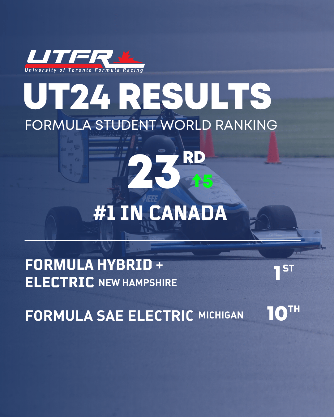 Lastly, Formula Student Electric world rankings have dropped! UT24 finished the season strong, climbing 5 spots to 23rd place! We’re also incredibly proud to announce that we ranked #1 in Canada